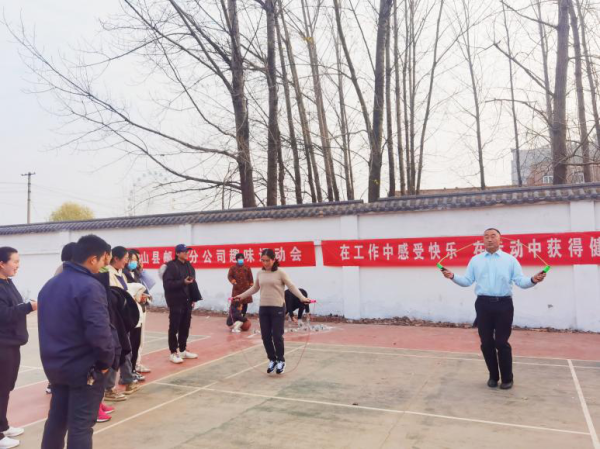為推進(jìn)和諧郵政建設(shè),12月10日下午,碭山縣分公司干部職工歡聚一堂舉辦“趣味運(yùn)動(dòng)會(huì)”活動(dòng)。 以“暖人心、聚人氣、鼓干勁、提士氣”為主題,本次比賽項(xiàng)目分為團(tuán)體賽和個(gè)體賽,團(tuán)體賽有“集體跳繩”、“ 拔河”、“ 趣味保齡球”和“ 接力袋鼠跳”,個(gè)體賽有“球行萬(wàn)里”和“ 個(gè)人跳繩”。團(tuán)體賽中,大家心往一處想,勁往一處使,現(xiàn)場(chǎng)歡呼聲一浪高過(guò)一浪。個(gè)體賽中,選手身影矯健,場(chǎng)面緊張而又激烈。
