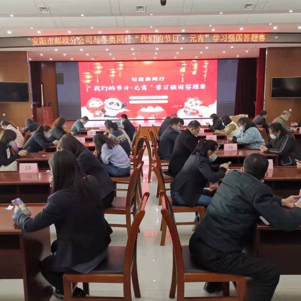 2月14日下午,安陽市郵政工會舉辦了“與冬奧同行,我們的節(jié)日·元宵‘學習強國’答題賽”活動,經(jīng)過各分會選撥,共有48名員工參加了今天的比賽,經(jīng)過5輪、一個半小時的對抗,最終,押運公司分會選派的江洋飛獲得了本次比賽第一名,綜合辦公室分會選派的張月波獲得第二名,黨建部分會選派的張利姣和綜合辦公司分會選派的高磊獲得并列第三名。本次活動的開展,進一步激發(fā)了廣大郵政員工登錄“學習強國”進行自主學習的熱情。