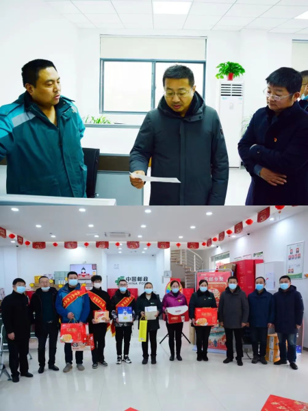 1月27日,鹽城市分公司黨委書記、總經(jīng)理張旭東一行赴射陽縣分公司慰問一線員工。在洋馬支局、黃沙港支局,張旭東詳細詢問了旺季生產(chǎn)金融業(yè)務(wù)發(fā)展情況,鼓勵員工要振奮精神、決勝旺季,為拼搏60億而奮戰(zhàn)。張旭東叮囑員工要保重身體,以旺盛的精力投入到工作中去。在射陽晨光投遞部、三維投遞部,張旭東詢問了春節(jié)前期每日的包裹投遞量,叮囑投遞員做好防寒保暖,并提前向他們送上新春祝福。當(dāng)日,張旭東向奮戰(zhàn)在一線的員工們送上牛奶、面包等慰問品,讓基層員工在這寒冷的冬日感受到企業(yè)的溫暖和關(guān)懷。