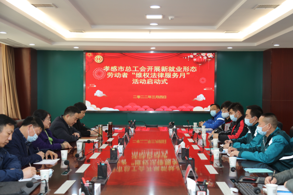 3月4日上午,孝感市總工會在孝感分郵政分公司,啟動開展新就業(yè)形態(tài)勞動者“維權(quán)法律服務(wù)月”活動,活動主題“遵法守法·攜手筑夢”服務(wù)新就業(yè)形態(tài)勞動者公益法律服務(wù)行動,市總工會副主席李朝霞參加,參加活動的有快遞協(xié)會、郵政公司、順豐速運、德邦快遞、中通速遞、韻達快遞20名快遞員。