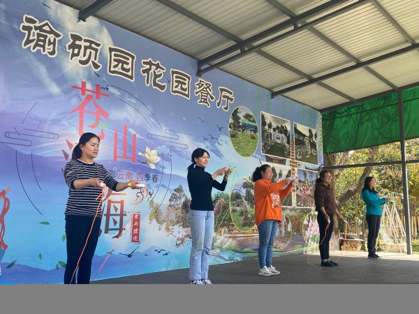 大理郵政工會精心策劃組織了跳繩、母雞下蛋、孤島求生等系列趣味活動,大家積極參與。在王容《小雞小雞》的音樂聲中,參賽女神們各種姿勢,扭動身體的、下腰的、上下跳的,盡全力將身后盒中的乒乓球拋出盒子,盒子內(nèi)剩余球最少者獲勝,形像比喻為“母雞下蛋”;“孤島求生”,一群人搶凳子,有人摸著凳子走、有人坐在別人大腿上,各種搞笑,大家開心著、快樂著。