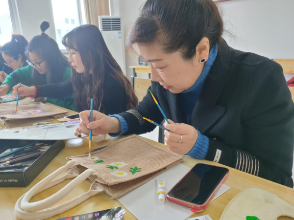 活動現(xiàn)場,女神們制作DIY麻袋包,不同的顏色匯成不同的圖案,呈現(xiàn)出獨具匠心的包包;制作美味蛋撻,烤箱內排列整齊的蛋撻鼓起大大的氣泡,散出特有的香味。現(xiàn)場氣氛熱烈、歡聲笑語。