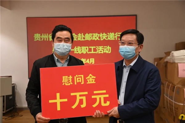 4月11日,貴州省總工會(huì)黨組書記、副主席向忠熊一行,赴中國郵政集團(tuán)有限公司貴陽市云巖區(qū)分公司瑞北投遞部,看望慰問在抗擊新冠肺炎疫情工作中始終奮戰(zhàn)在一線的郵政快遞員,并向省郵政工會(huì)送去10萬元“防疫”慰問金及一次性醫(yī)用口罩、84消毒液、酒精、免洗洗手凝膠等一批防疫物資,啟動(dòng)了貴州省總工會(huì)2022年關(guān)懷遭受疫情影響企業(yè)活動(dòng)。