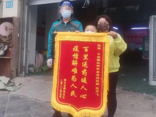 鑫港攬投部了解到情況后非常重視,立即指派張朋飛專人負(fù)責(zé)收寄并跟蹤至簽收,一場愛心接力相續(xù)展開。郵件收寄后第一時間被送往網(wǎng)路運營中心進行分揀分發(fā),隨后又被轉(zhuǎn)運往曲周。由于曲周正處于疫情封控期,曲周分公司投遞人員無法正常到崗進行投遞作業(yè)。了解到情況后張朋飛立即上報寄遞部領(lǐng)導(dǎo),業(yè)務(wù)經(jīng)理周青龍在了解情況后,立即與曲周分公司溝通協(xié)調(diào),曲周分公司又報請縣政府批準(zhǔn),在市、縣分公司和縣政府三方努力下,救命藥于5月9日被成功送到患者手中。