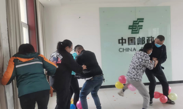 活動由“成語接龍”,“搶凳子”,“踩氣球”,“你比我猜”等四個環(huán)節(jié)依次進行,員工們自行組成兩隊參加比賽,分公司領(lǐng)導(dǎo)班子親自帶頭參與,鼓舞士氣,職工們奮勇爭先,比賽精彩紛呈、氣氛熱烈,喝彩聲接連不斷,尤其是踩氣球環(huán)節(jié),觀眾搖旗吶喊,氛圍無比活躍。在“你比我猜”環(huán)節(jié)中融入郵政標(biāo)語,話術(shù),用具等,加深了員工對中國郵政企業(yè)文化理念的印象。