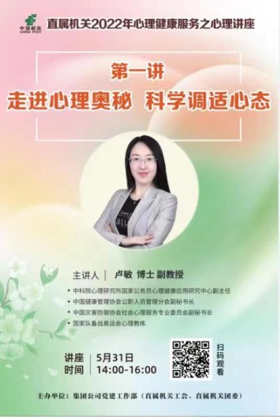 下一步,直屬機關工會將與心理健康服務合作機構(gòu)常態(tài)化合作,多渠道、多形式加大心理健康服務的宣傳推廣,引導員工深化對心理健康的認識,正確處理負面情緒和壓力、解決工作和生活中出現(xiàn)的困擾和問題;有針對性對不同群體提供關愛和支持,通過開展駐場心理咨詢服務、舉辦系列心理健康專題講座、團體輔導等,引導廣大員工正視心理健康、主動積極參與、及時求助化解問題。通過開展心理健康系列服務工作,切實讓廣大員工感受到企業(yè)的關懷,以健康、積極、樂觀的心理狀態(tài)應對工作生活的挑戰(zhàn),用平和的心態(tài)正視工作、學會自我疏導壓力,不斷增強工作活力,為中國郵政高質(zhì)量發(fā)展注入源源不斷的“心”活力,凝聚正能量。