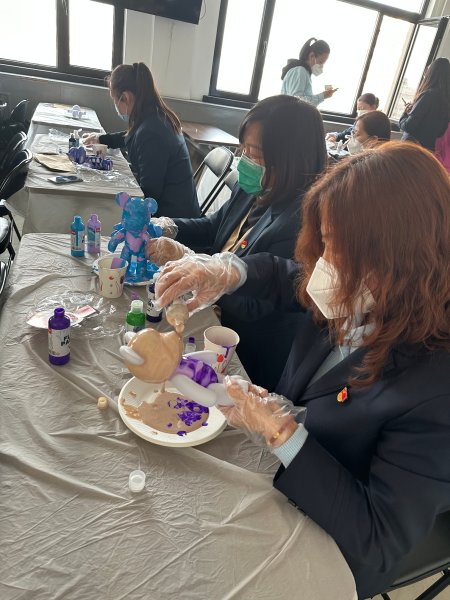 在指導老師的帶領下,參與的女職工們先挑選出自己喜歡的顏色后積極動手操作,利用自己靈巧的雙手、豐富的創(chuàng)意親自設計、擺放并染色制作出一只只屬于自己可愛小熊?;顒油戤吅?,大家紛紛舉著自己的作品進行拍照留念,共同分享DIY小熊的體會和收獲的喜悅,在一只只色彩斑斕小熊的襯托下更凸顯女性同胞柔美、可愛的獨特氣質。