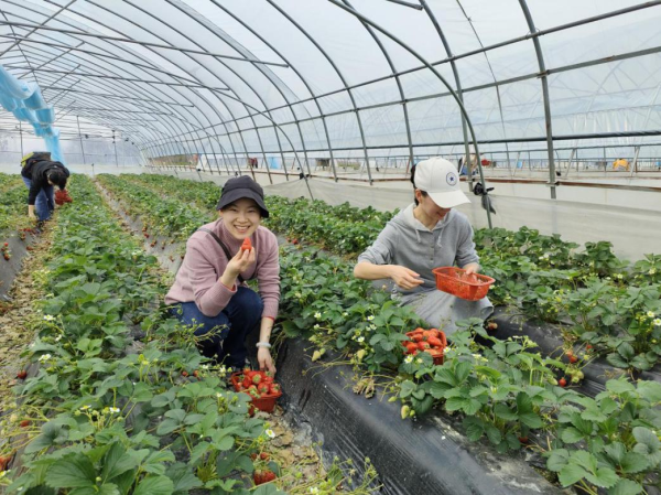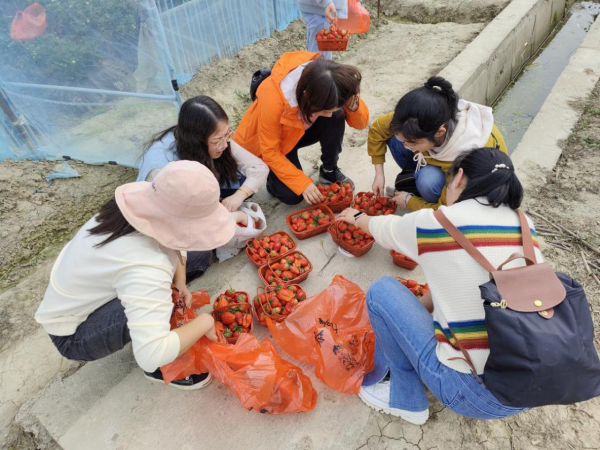 動(dòng)結(jié)合郵政惠農(nóng)活動(dòng),特意選在南陵縣黃墓村黨組織領(lǐng)辦合作社的草莓大棚舉行。3月8日下午1點(diǎn),郵政巾幗們準(zhǔn)時(shí)出發(fā),踏上快樂采摘之旅。一踏入草莓大棚,清新的草莓果香撲鼻而來,一派清新的田園氣息,放眼望去,鮮紅欲滴的草莓果實(shí)在一壟壟碧綠的草莓秧中若隱若現(xiàn),紅綠交映,一片生機(jī)勃勃。大家手提小果籃,沿著整齊的草莓田,化身快樂的小果農(nóng),一邊采摘品嘗,一邊相互交流,氣氛輕松活潑,體驗(yàn)著采摘草莓、品嘗鮮果的樂趣,現(xiàn)場(chǎng)快樂與熱情四溢。經(jīng)過一個(gè)多小時(shí)的采摘后,大家都有了豐碩的成果,每個(gè)人的臉上充滿著幸福的笑容和活力。