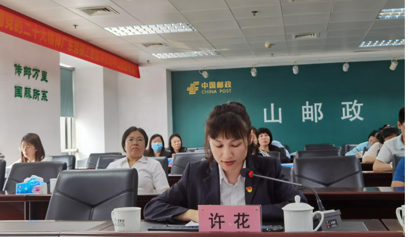 為深入學(xué)習(xí)宣傳貫徹黨的二十大精神,結(jié)合省郵政工會(huì)、女職委勞模學(xué)習(xí)相關(guān)工作要求及職工代表培訓(xùn)的安排,中山市分公司通過現(xiàn)場宣講和線上會(huì)議相結(jié)合的形式組織開展“奮進(jìn)新征程,巾幗展芳華”南粵巾幗勞模宣講活動(dòng),市分公司黨委、工會(huì)、女職委等委員干事、職工代表等98名員工參加活動(dòng)。同時(shí)中山市郵政工會(huì)將活動(dòng)資源共享到其他兄弟單位,邀請省培訓(xùn)中心和東莞市分公司的員工通過線上會(huì)議收聽宣講。
