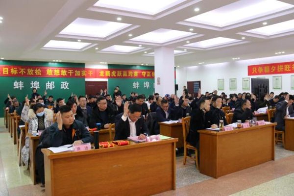 1月29日,蚌埠市郵政分公司召開工作會議暨二屆五次職工代表(會員代表)大會。會議聽取了市分公司黨委書記、總經(jīng)理許峰《守正創(chuàng)新 敢做善為 應(yīng)需盡能 見行見效 推動蚌埠郵政改革發(fā)展再上新臺階》的行政工作報告和工會主席鄭啟平《聚焦發(fā)展 勇攀高峰 團結(jié)動員廣大職工 為蚌埠郵政高質(zhì)量發(fā)展貢獻力量》的工會工作報告,以及二屆五次職代會籌備情況,代表資格審查情況,二屆四次職代會代表提案落實情況,社會保險繳納、福利費使用、財務(wù)預決算、集體合同履行情況等報告。 會議期間,對市分公司先進集體、班組、先進個人和優(yōu)秀部門工會進行表彰;對領(lǐng)導干部進行民主測評;職工代表認真審議并積極開展討論,大家踴躍發(fā)言,建言獻策,對落實好大會確定的工作任務(wù),提出了寶貴的意見和建議;最后,表決通過各類報告、大會決議和《2024年績效考核辦法》。 大會號召,全市郵政干部職工,要在市分公司黨委的正確領(lǐng)導下,守正創(chuàng)新、敢做善為、應(yīng)需盡能、見行見效,推動全市郵政工作在新的一年呈現(xiàn)全員奮斗奮進、全程提質(zhì)提效、全面爭先爭優(yōu)、全域出新出彩的新局面,推進蚌埠郵政改革發(fā)展再上新臺階,以優(yōu)異成績迎接中華人民共和國成立七十五周年。