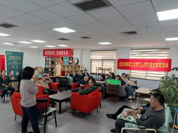 為了幫助廣大職工提升心理健康意識,積極挖掘自身潛能,提升工作幸福感受,海淀區(qū)分公司按照市分公司2024年郵政員工心理健康關(guān)愛送基層活動安排,于4月9日在職工之家承接市總工會“心理關(guān)愛勞動者,健康工作50年:遇見更好的自己”專題心理團體輔導(dǎo)活動,開展了“放松身心,助眠體驗”心理團體活動,以促進員工身心健康全面發(fā)展,活動共30名員工參加。