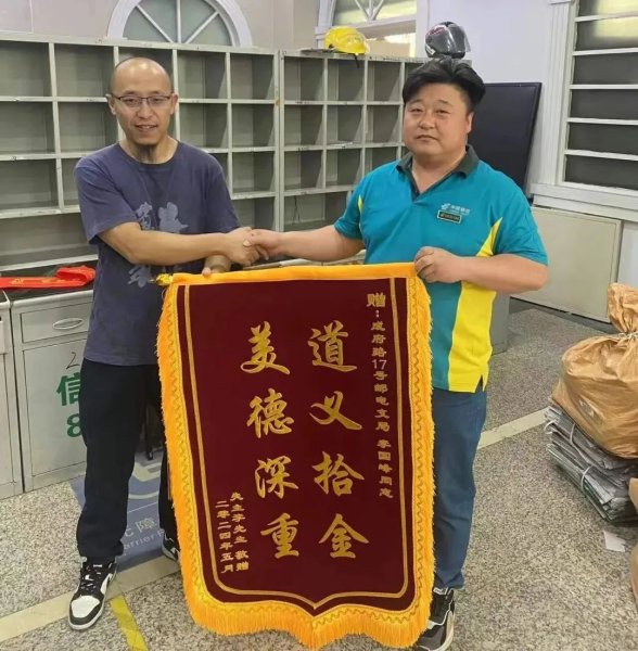 “真是太感謝了,您的一個(gè)善舉,不僅讓我避免了錢財(cái)上的損失,更是讓我減少了太多的麻煩,要不光補(bǔ)齊些證件,沒有十天半個(gè)月下不來?!?月4日,李先生來到學(xué)院路投遞部,將手中寫有“道義拾金,美德深重”的錦旗交給投遞部主任李國峰,并不斷表達(dá)自己的感激之情。