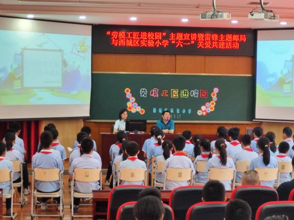 六一兒童節(jié)前夕,西城區(qū)分公司工會(huì)聯(lián)合百萬(wàn)莊支局與實(shí)驗(yàn)小學(xué)攜手合作,于5月27日開(kāi)展了“勞模工匠進(jìn)校園”主題宣講暨雷鋒主題郵局與實(shí)驗(yàn)小學(xué)‘六一’關(guān)愛(ài)共建活動(dòng)。