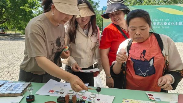 郵政展臺前,游客們通過動手制作明信片,聽郵政員工介紹御林古桑園歷史,對大興區(qū)獨有的歷史文化有了更加深刻的了解。特別是在“從古桑園寄出的祝福”這一體驗項目,得到游客們的喜愛,大家紛紛坐下,將美好祝福書寫在明信片上,加蓋寓意吉祥的文化紀念戳,寄給遠方的親人朋友。