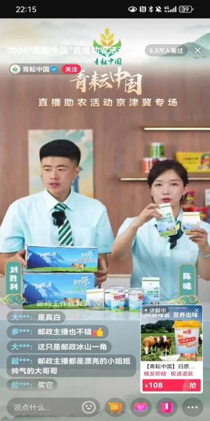 “郵政的主播真有活力” “郵政主播都是漂亮的小姐姐、 帥氣的大哥哥” “郵政的工作服真美” 日前,來自北京郵政的兩位主播 走進團中央“青耘中國”的直播間與來自河北、天津等地的青年主播一起,進行了“青耘中國” 京津冀助農(nóng)專場直播。