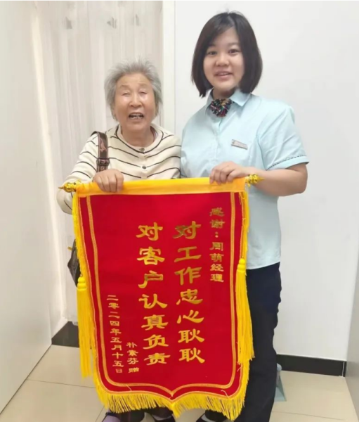 “那天中午,樸阿姨跟老伴一起來到網(wǎng)點,把一面鮮紅的錦旗遞到我的手里,并再一次表達了感謝?!背枀^(qū)松榆東里營業(yè)所理財經(jīng)理周萌說,當時覺得既意外又感動,自己只是做了一件小事,沒想到卻得到用戶如此溫暖的回應(yīng)。