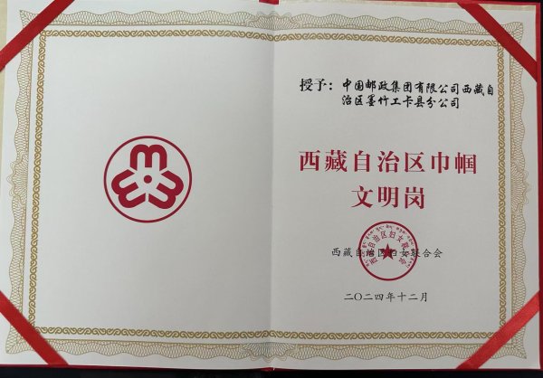 西藏拉薩市墨竹工卡郵政分公司攬獲西藏自治區(qū)巾幗文明崗稱號(hào)