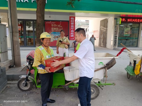 在鐘祥郵政“郵愛驛站”內,寬敞明亮的休息區(qū)涼意襲人,配備齊全的防暑物資擺放有序。7月28日上午,20余名戶外工作者齊聚驛站,參加“夏送清涼”專題活動。鐘祥市郵政工會主席張曉華親自為到場的環(huán)衛(wèi)工人、外賣騎手等送上清涼大禮包,內含解暑飲品、防暑藥品等實用物資?!按蠹以趫允貚徫坏耐瑫r,一定要注意防暑降溫,確保作業(yè)安全?!睆垥匀A的暖心叮囑讓在場戶外勞動者們倍感溫馨。