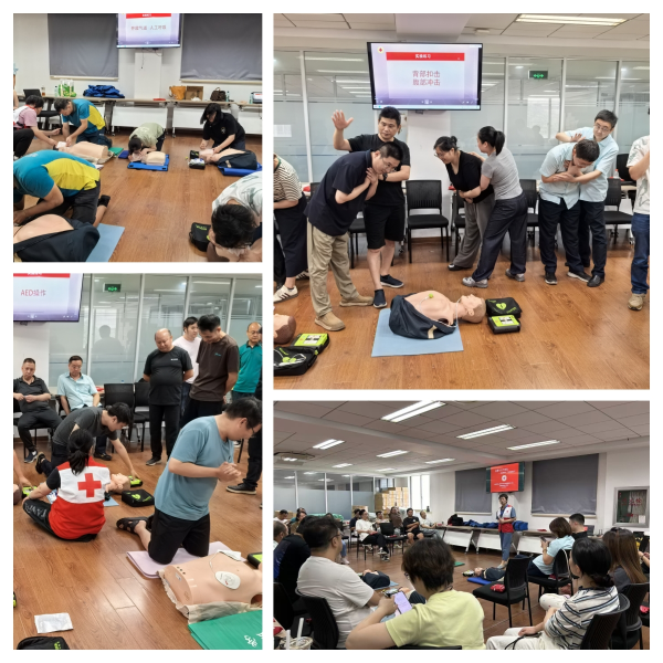 現(xiàn)場(chǎng)模擬實(shí)操環(huán)節(jié),更是工會(huì)為職工搭建的“沉浸式練兵場(chǎng)”。工會(huì)協(xié)調(diào)配備了足量的專業(yè)心肺復(fù)蘇模擬人、教學(xué)用AED設(shè)備,確保每位職工都有動(dòng)手練習(xí)的機(jī)會(huì);講師采用“分組教學(xué)+一對(duì)一指導(dǎo)”的方式,手把手糾正職工的操作細(xì)節(jié)——從雙手按壓的位置、力度、頻率,到人工呼吸的吹氣角度與時(shí)長(zhǎng),再到AED開機(jī)、粘貼電極片、等待除顫等步驟,每一個(gè)動(dòng)作都要求精準(zhǔn)規(guī)范?!鞍磯簳r(shí)要保持上半身直立,用上半身力量往下壓,深度至少5厘米!”“AED提示‘正在分析心律’時(shí),一定要確保所有人遠(yuǎn)離患者,這既是保護(hù)他人,也是保護(hù)自己!”講師的耐心指導(dǎo)與反復(fù)強(qiáng)調(diào),讓職工們逐漸克服緊張情緒。不少職工主動(dòng)反復(fù)練習(xí),直到動(dòng)作標(biāo)準(zhǔn)才肯停下,“工會(huì)組織的這次培訓(xùn)太及時(shí)了,學(xué)會(huì)這些技能,不管是工作中還是生活里,遇到突發(fā)情況都不慌了!”攬投部的李師傅一邊練習(xí)一邊說道。