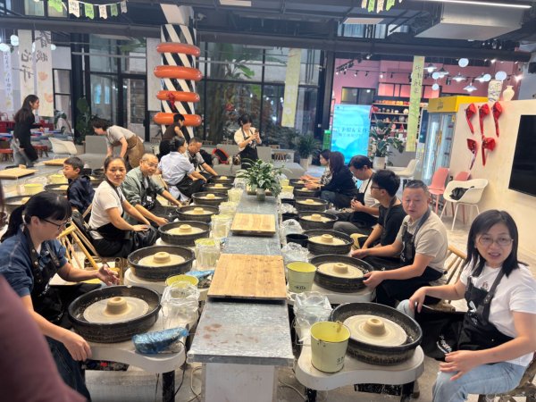 在瓷都景德鎮(zhèn),會(huì)員們來(lái)到了景德鎮(zhèn)古窯民俗博覽區(qū)。這里仿佛是一個(gè)活態(tài)的陶瓷博物館,時(shí)光在此凝固。隨后在陶溪川文創(chuàng)街區(qū),會(huì)員們流連于一個(gè)個(gè)獨(dú)具特色的創(chuàng)意集市,欣賞著年輕“景漂”藝術(shù)家們充滿奇思妙想的作品。此行最令人期待的環(huán)節(jié),莫過(guò)于親手體驗(yàn)陶瓷制作。在專業(yè)老師的指導(dǎo)下,大家紛紛化身“匠人”??此坪?jiǎn)單的拉坯環(huán)節(jié),實(shí)則充滿了挑戰(zhàn)?,F(xiàn)場(chǎng)歡聲笑語(yǔ)不斷,有的同事作品一氣呵成,有的則經(jīng)歷了數(shù)次“坍塌”后重振旗鼓。在這個(gè)過(guò)程中,大家不僅體驗(yàn)了陶瓷制作的不易,更在互幫互助、交流心得中,領(lǐng)悟到耐心、專注與協(xié)作的珍貴。