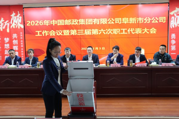大會聽取并審議了題為《蓄勢聚力擔使命 篤行實干謀發(fā)展 以轉(zhuǎn)促新 以實促干 開創(chuàng)阜新郵政高質(zhì)量發(fā)展新篇章》的工作報告。工作報告全面總結(jié)了2025年各項工作成效,系統(tǒng)提出了2026年經(jīng)營發(fā)展目標和各項工作舉措。會上以投票方式表決通過了《中國郵政集團有限公司阜新市分公司2026年為職工辦實事項目協(xié)議書》。