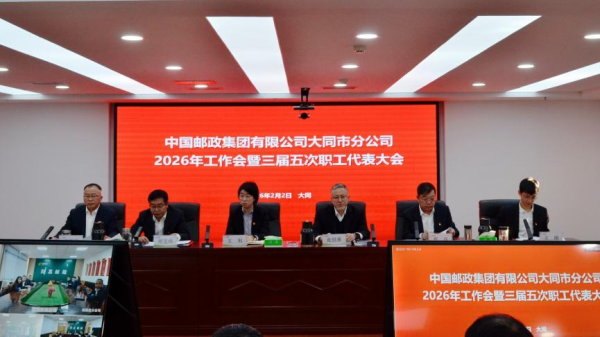 2月2日,大同市分公司召開2026年全市郵政工作會議暨三屆五次職工代表大會。市分公司領(lǐng)導(dǎo)班子成員、全市四級副以上領(lǐng)導(dǎo)人員、職工代表、縣區(qū)分各部門、班組、網(wǎng)點(diǎn)負(fù)責(zé)人分別在主分會場參加了會議。